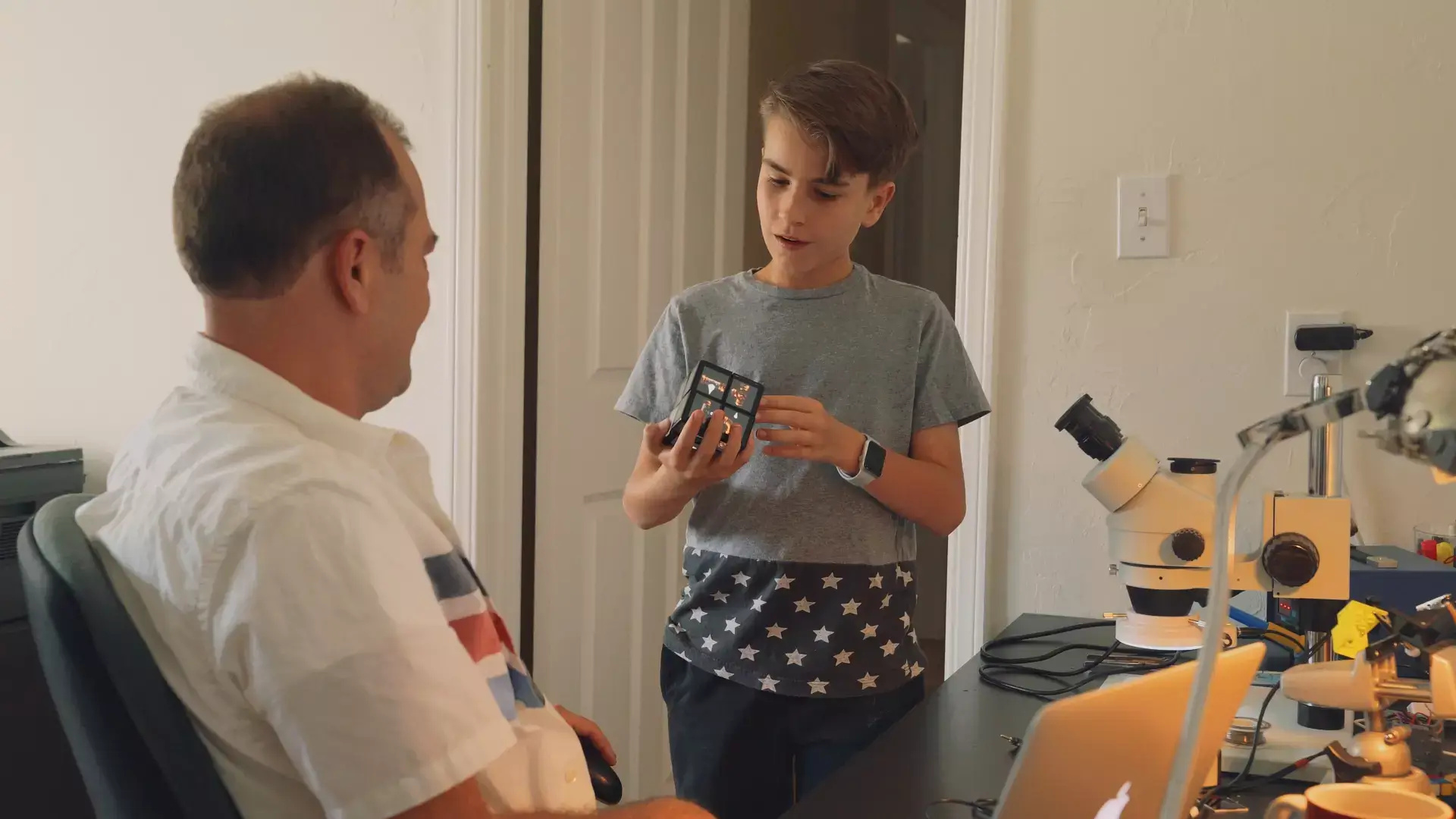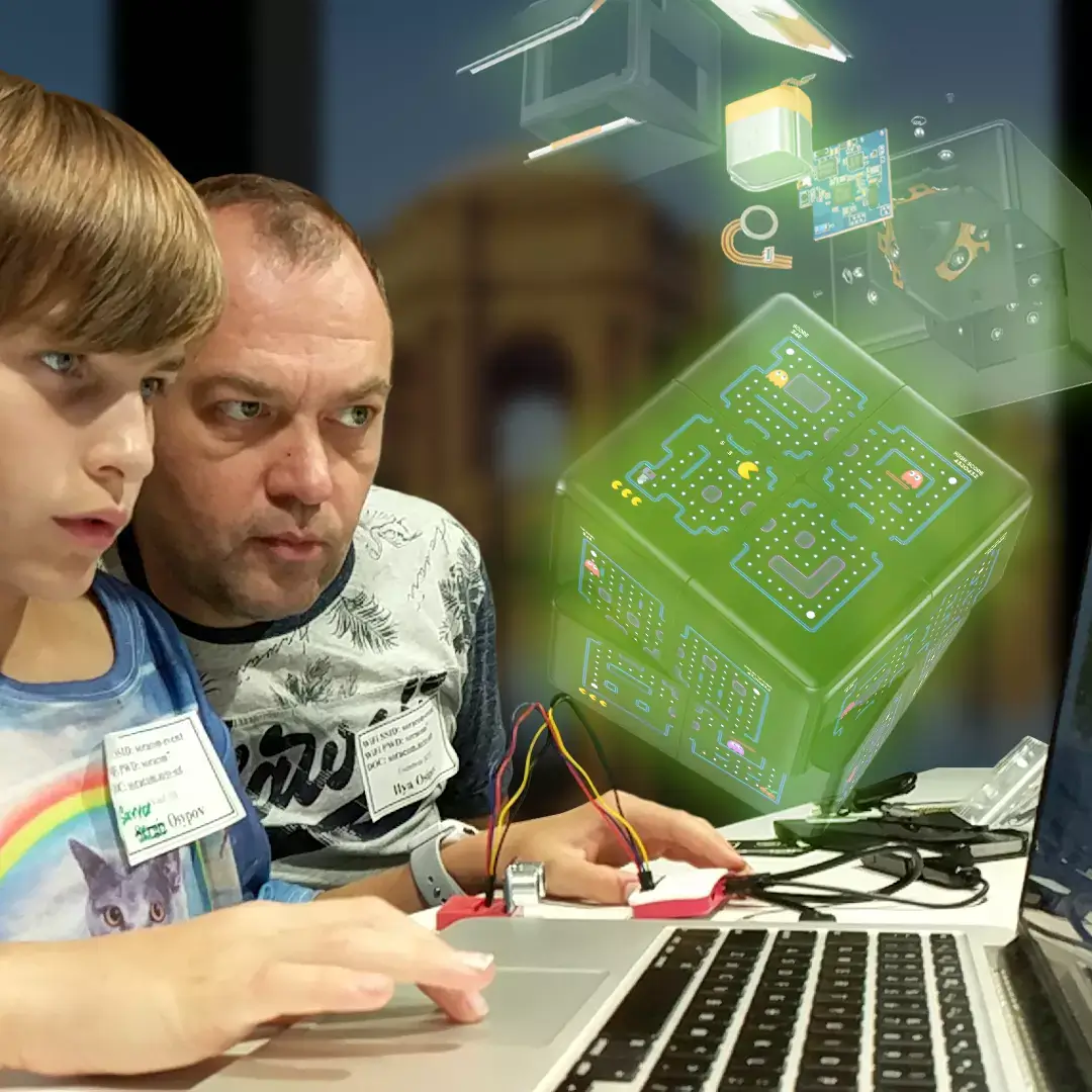 WOWCube® console and its father-son creator team have come a long way since it was conceived. In 2016, Savva Osipov joined his dad Ilya, and bought an Arduino single-board microcontroller kit to experiment with home-built digital entertainment devices.