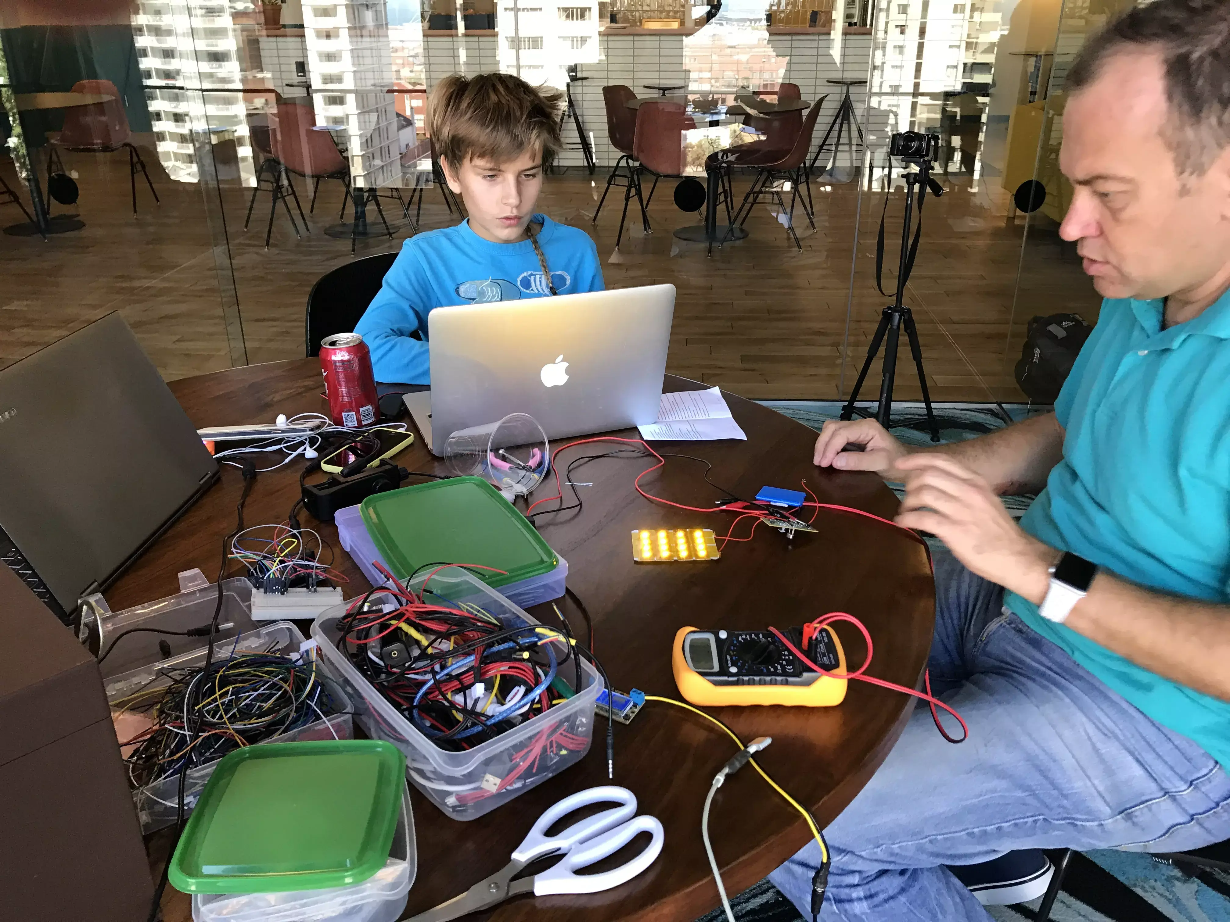 Savva, who was 12 years old at the time, inherited his grandfather’s love for chess, and joined his dad in a sequence of simple scientific experiments from a young age. They spent lots of time together solving puzzles, building gizmos, and generally having a good time around science-themed activities, programming and electronics. Arduino enabled simple connection to a computer via USB cable and straightforward control of multiple external modules and sensors.