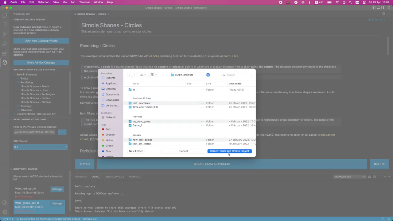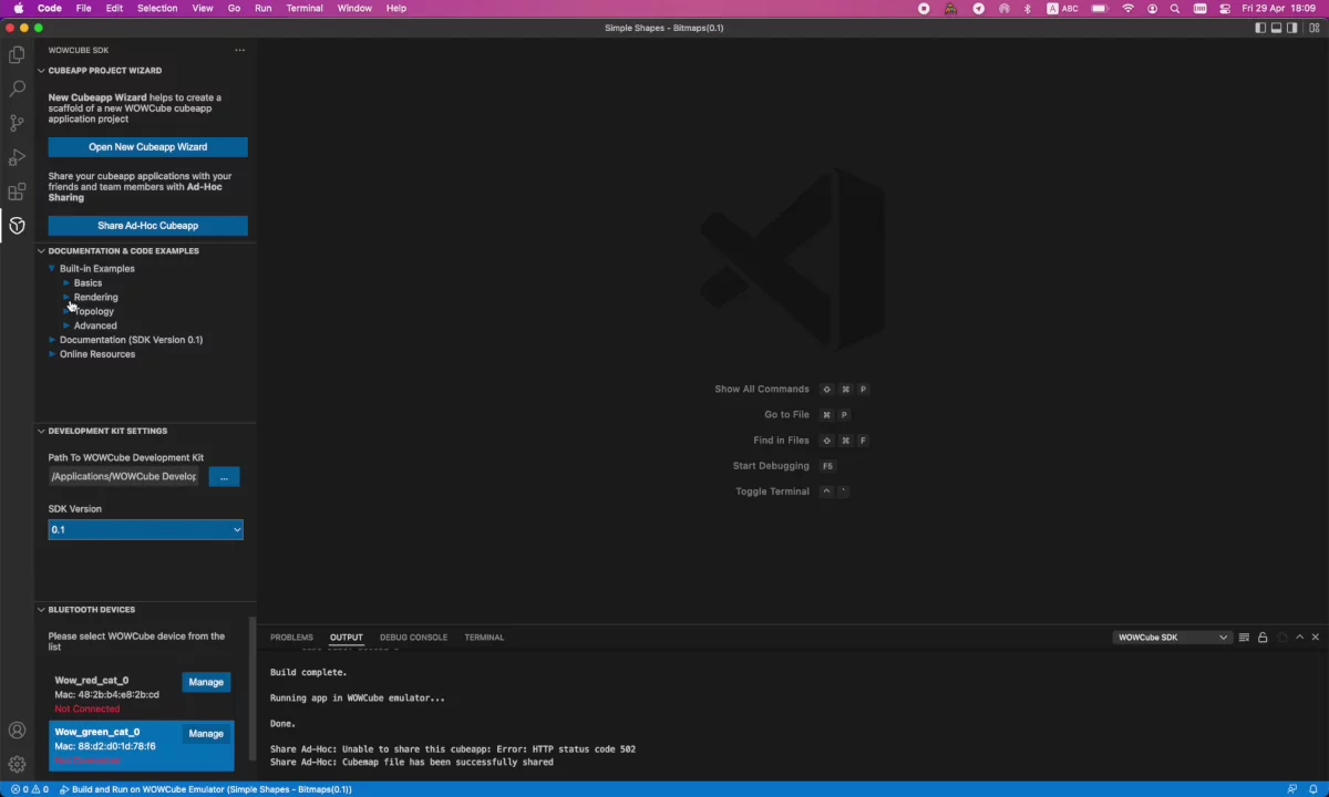 As you create and compile a project, you might want to share it with other developers, or perhaps with testers. For this, you can use the Share Ad-Hoc CubeApp utility. The utility makes the app available to the receiving side over the Web. Actually, it generates a QR code that the other person can scan with a smart phone’s scanner, download the application via a link encoded in the QR code, and then upload the application to a WOWCube device via Bluetooth..